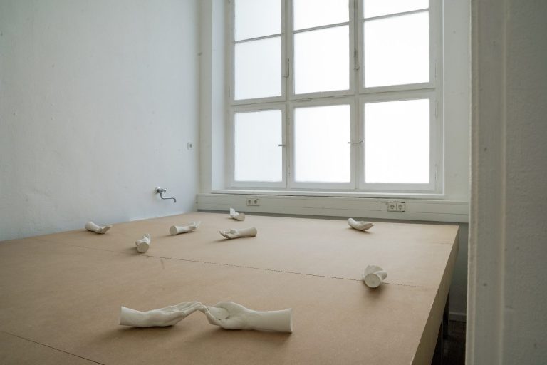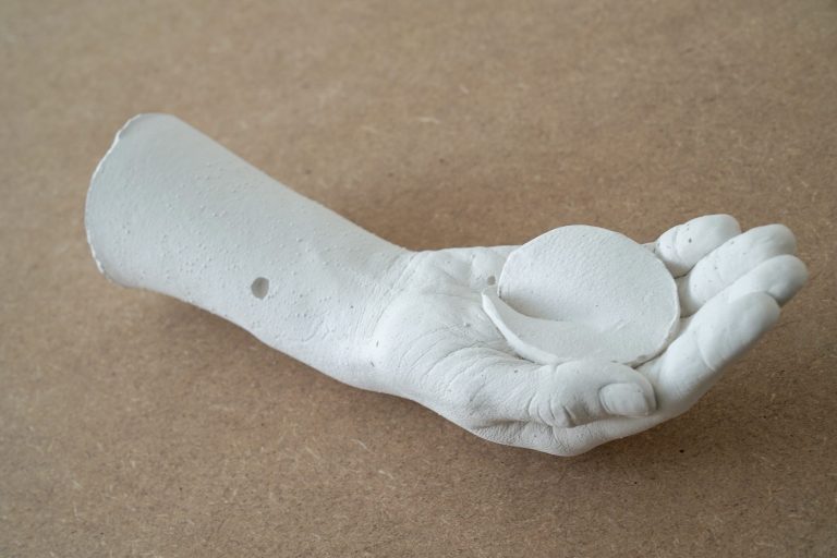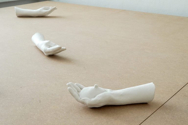Gipsabdrücke meiner Hände liegen, die verschiedene Teile meines Körpers