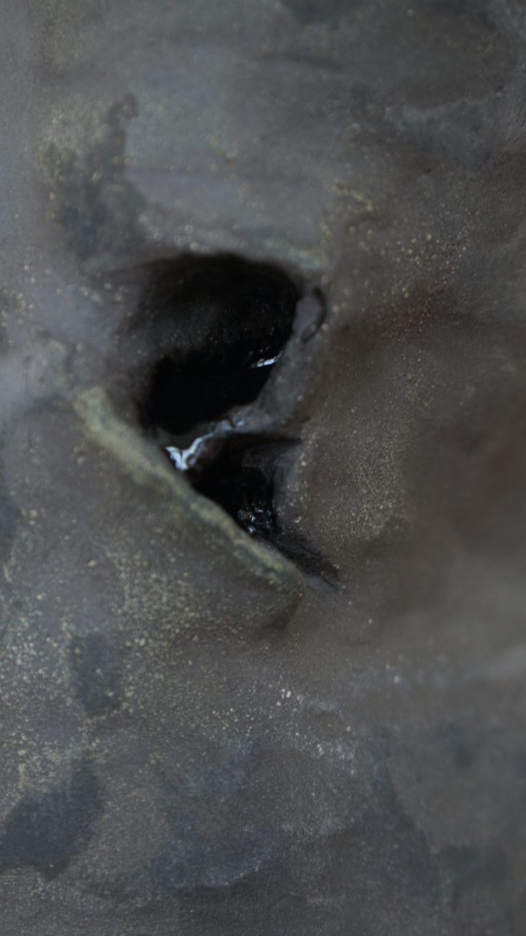 Die Oberfläche ist rau. Öffnungen, Schlitze, Falten nähern Körperteile an. Durch